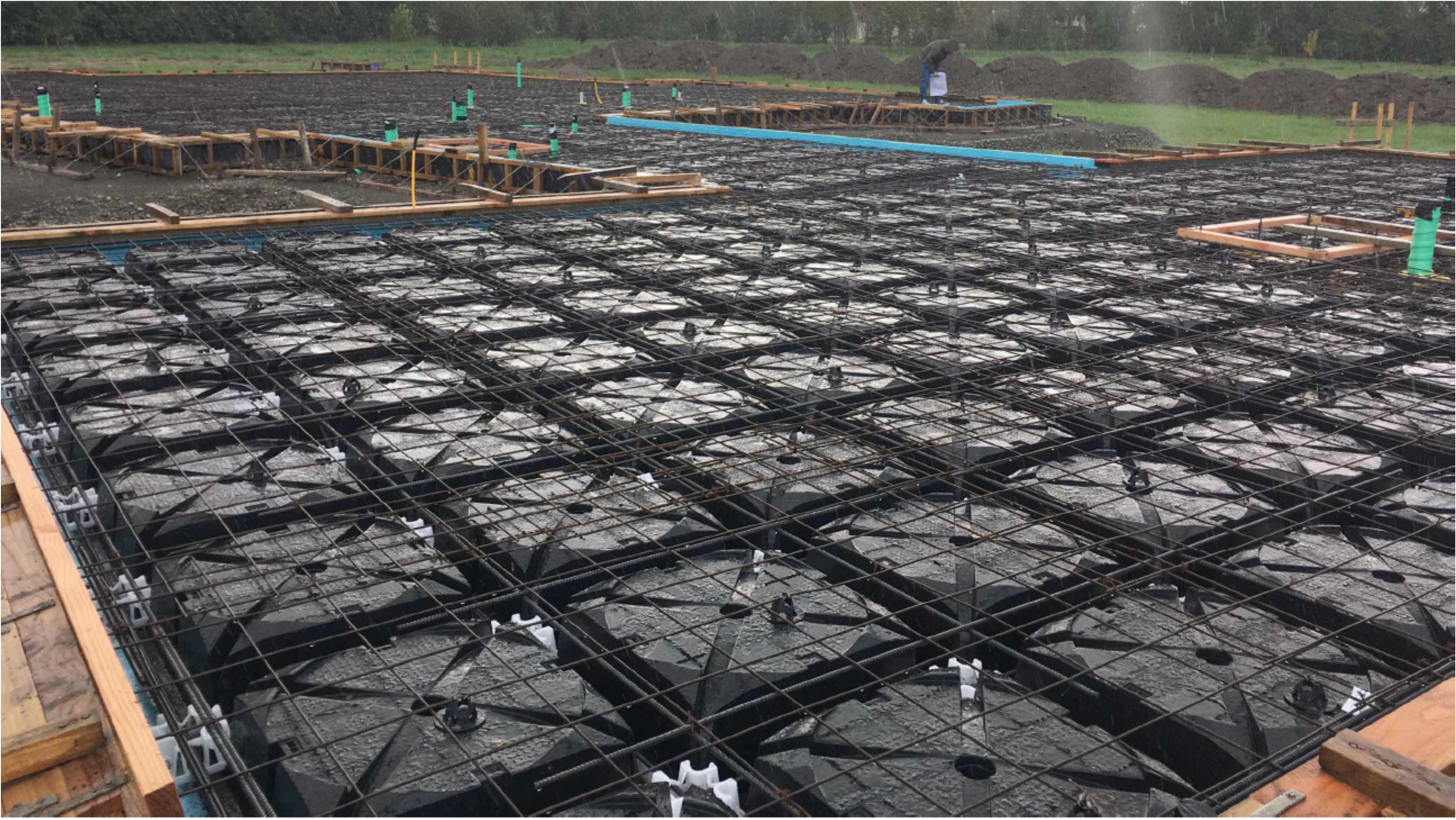 The TC2 RibRaft foundation will require supplementary reinforcing and or fibres in the concrete and is sometimes achieved with 300mm pods, with an overall thickness of 400mm.