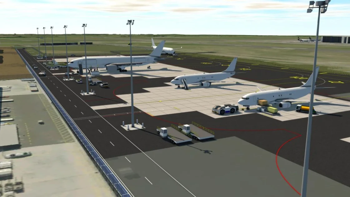 | The multi-million-dollar project will expand the freight parking area, known as an apron, to the size of six football fields, allowing space for up to eight 737-sized planes or four larger 757 aircraft. |
